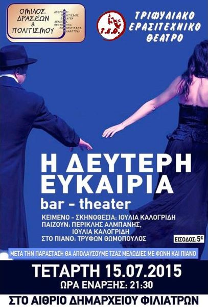 Το Τριφυλιακό Ερασιτεχνικό Θέατρο σε συνεργασία με τον Όμιλο Δράσεων & Πολιτισμού παρουσιάζουν τη μουσικοθεατρική παράσταση "Η Δεύτερη Ευκαιρία"