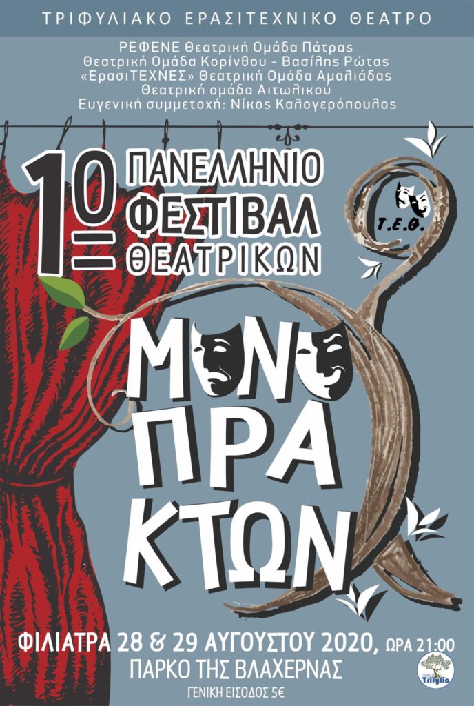 Το Πρώτο Πανελλήνιο Φεστιβάλ Θεατρικών Μονόπρακτων του ΤΕΘ είναι γεγονός! Αυτήν την Παρασκευή και Σάββατο, 28 και 29 Αυγούστου, ελάτε να απολαύσετε θεατρικά μονόπρακτα από διάφορες ερασιτεχνικές ομάδες της Ελλάδας στο Πάρκο της Βλαχέρνας, στα Φιλιατρά. Ώρα έναρξης 9μμ.